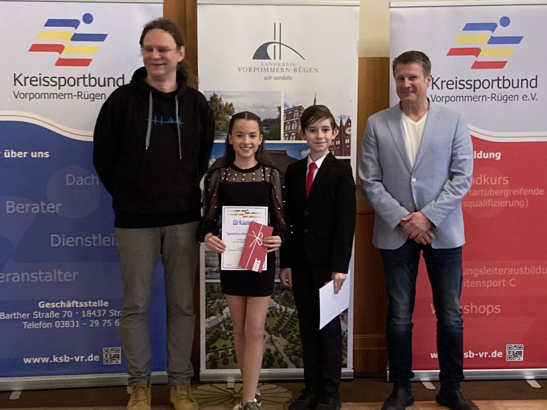 Am 20.06.2025 war für Lena & Paulina ein besonderer Tag. Sie wurden vom Landkreis Vorpommern-Rügen zum Sportler des Jahres 2025 ausgezeichnet. In einer festlichen Veranstaltung in Sassnitz erhielten die Mädels ihre Auszeichnung und gaben gleichzeitig den Gästen eine kleine Kostprobe in ihr Können.