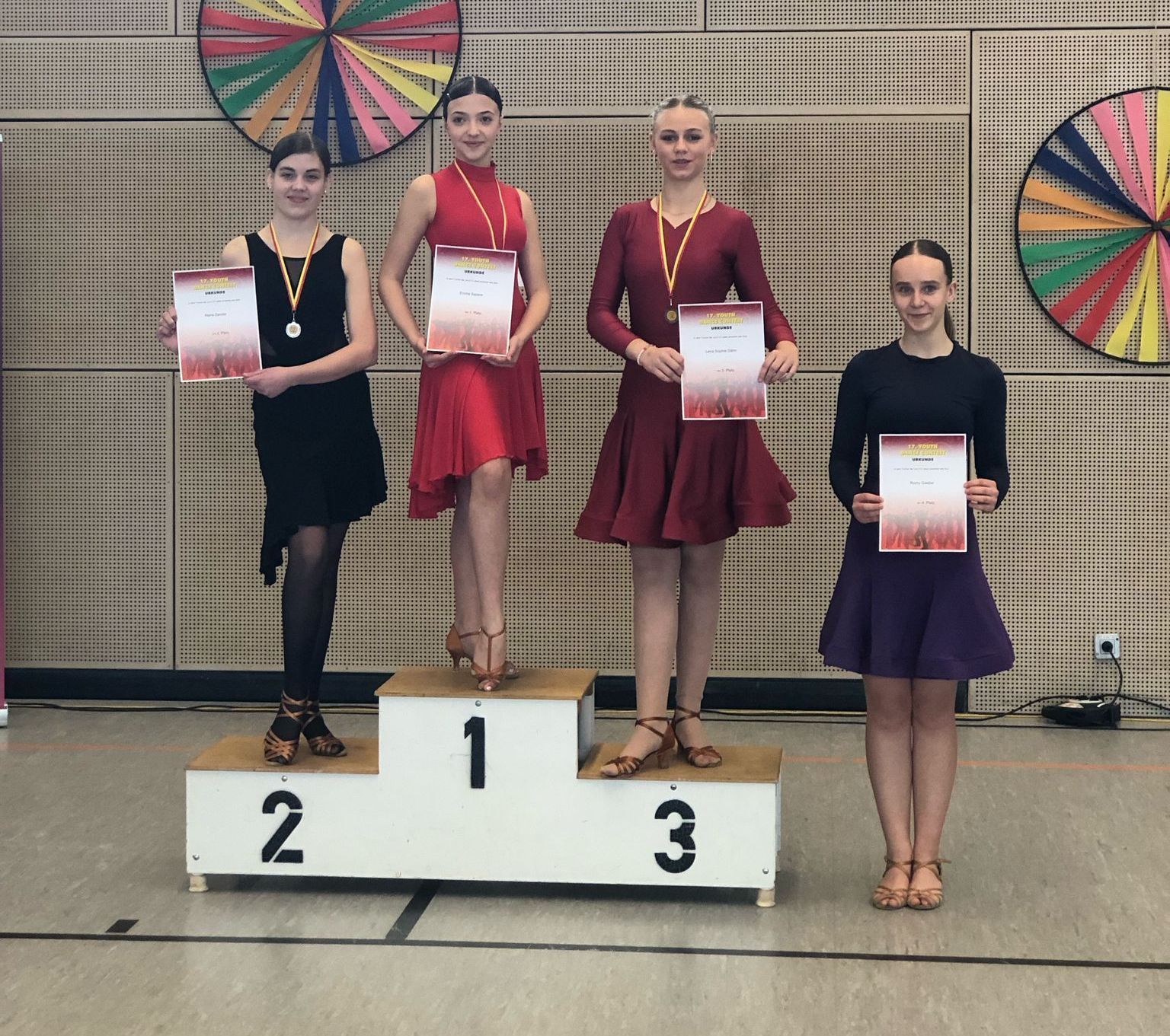 Von unserem Verein gingen 2 Paare in der Altersklass III/IV an den Start. In einem Feld von 7 Paaren präsentierten Lena & Paulina sowie Eileen & Cora ihre Latein Tänze.